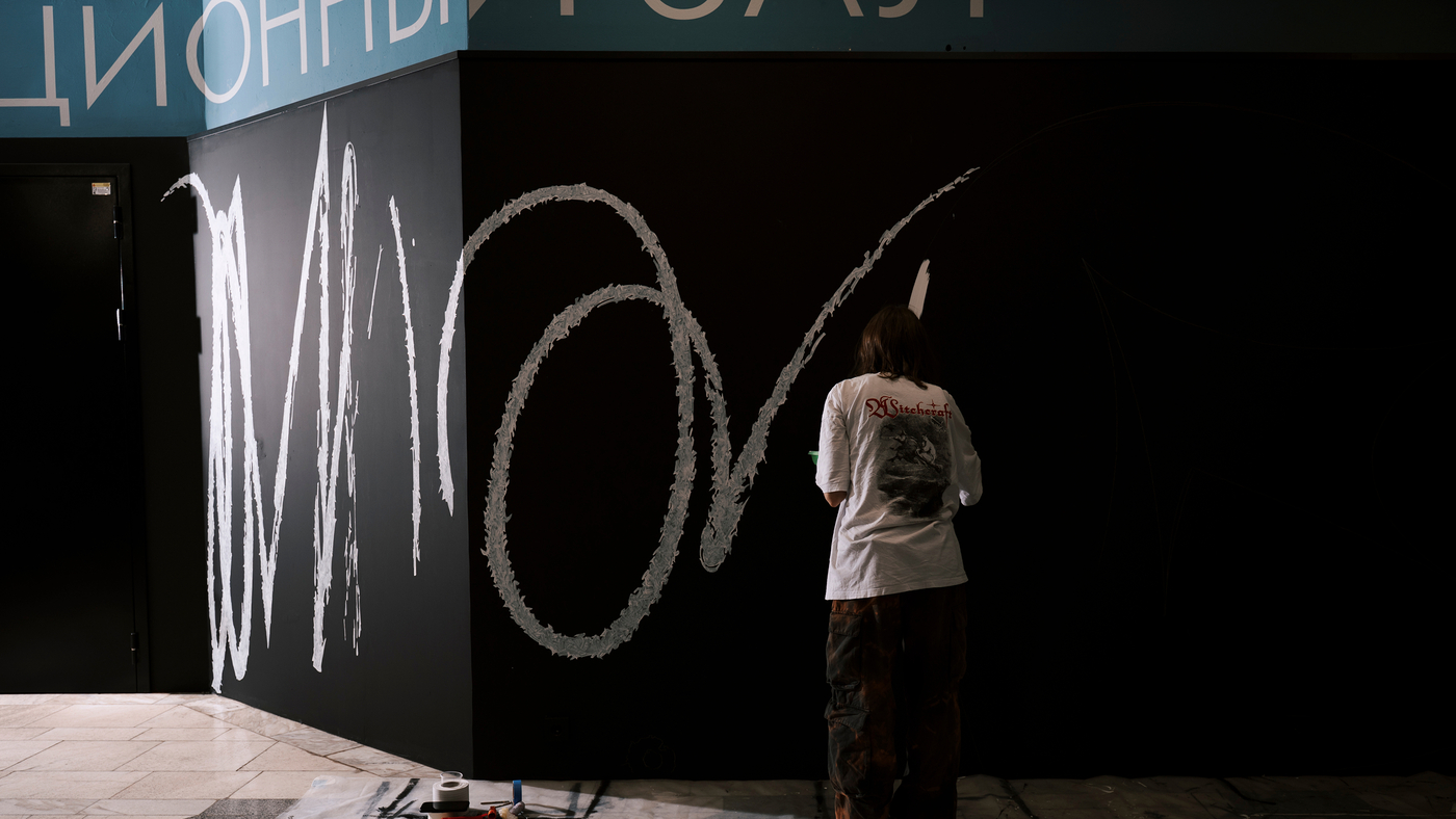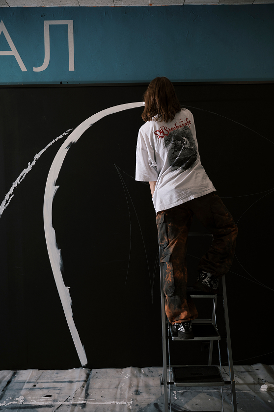 Тренога выбирает монументальный формат, чтобы говорить о самом сокровенном — о тихом хаосе надежды, который, подобно громкому дождю, размывает предопределённые пути, делая «слепое пятно» явным. Её лаконичная графика становится тем самым шифром, в котором читается напряжение перед будущим.